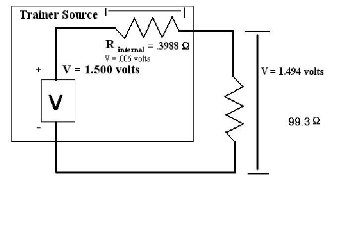 My experiences have shown that current is easier and more accurate to derive than any other value in the Ohm's law equation. Additionally, making current measurements adds the most error to results than measuring any other value. Also, calculating the internal resistance of the Trainer had a lot of error in it as the only digit that would have value would be the last digit, which had little significance. A different source, or a better way of determining the voltage drop would be needed.