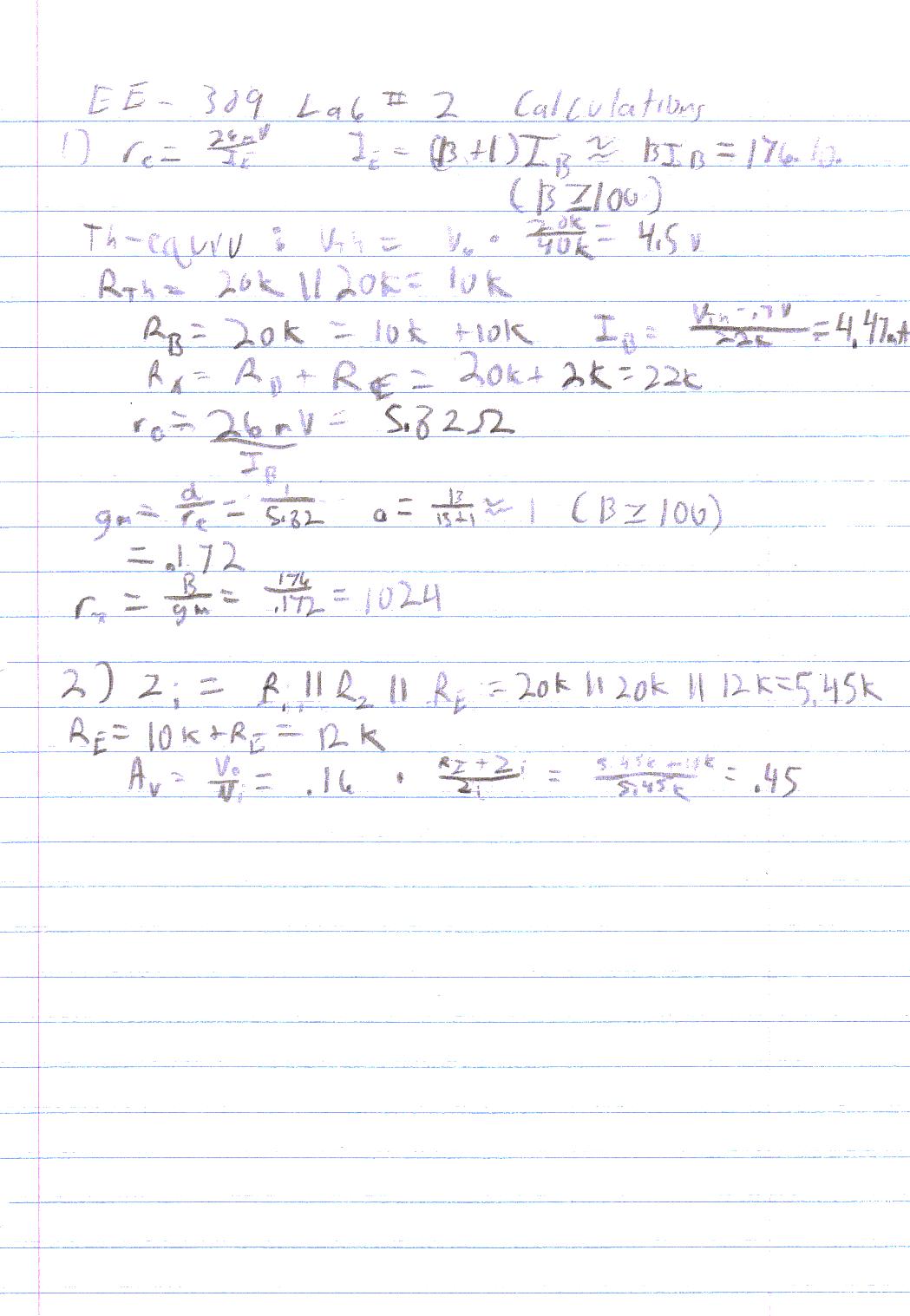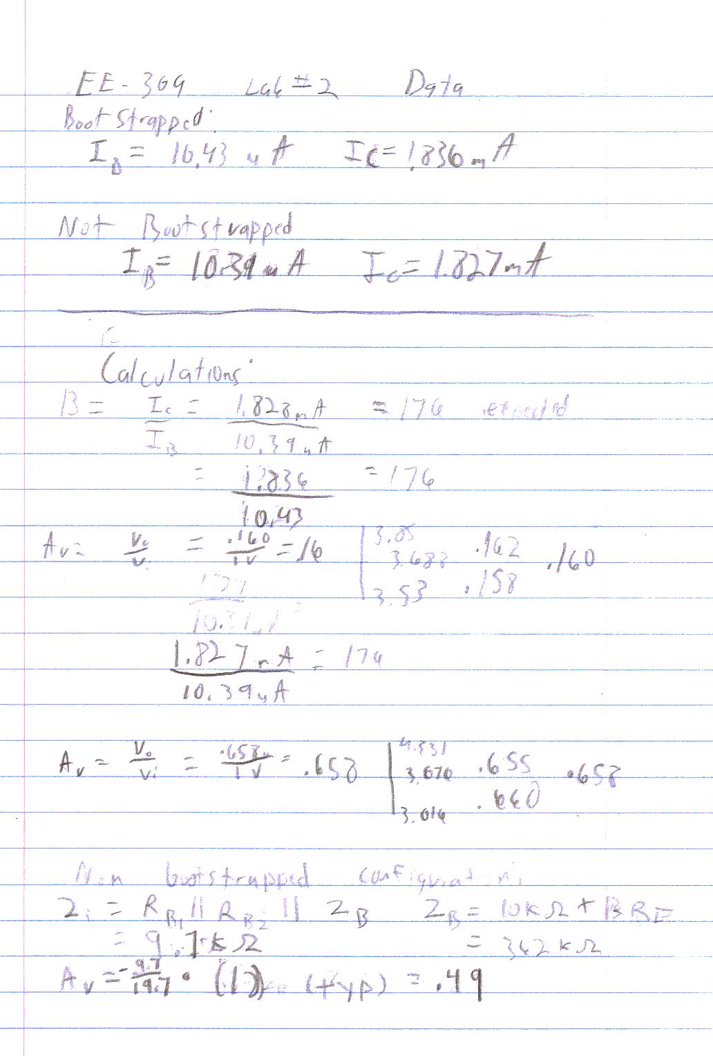 3) Q: Calculate the theoretical Zi and Av of the non bootstrapped circuit. Compare the values to the simulated values.