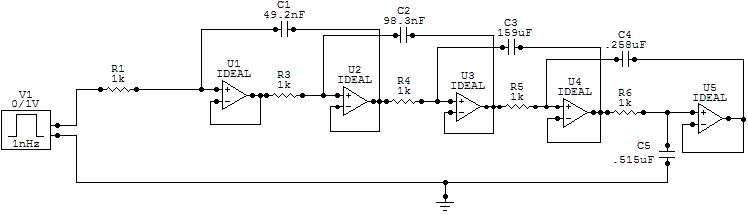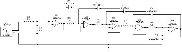 1) Design a 5th order active Butterworth low-pass filter with H(s) = 1/(s5 + 3.236*s4 + 5.236*s3 + 5.236s2 + 3.236s + 1)