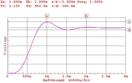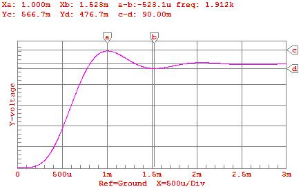 2: Step Response Predicted by CircuitMaker® for gain=.5