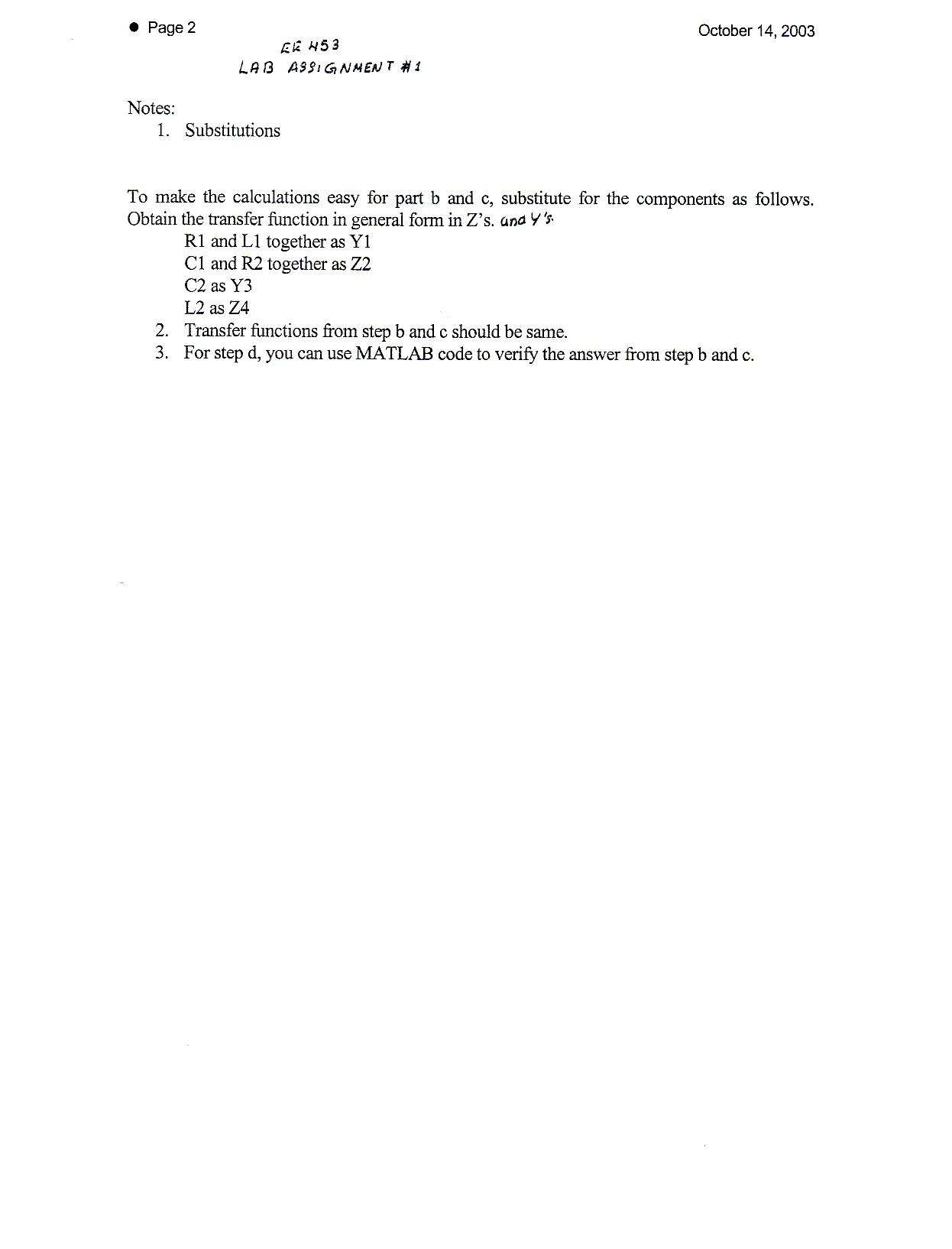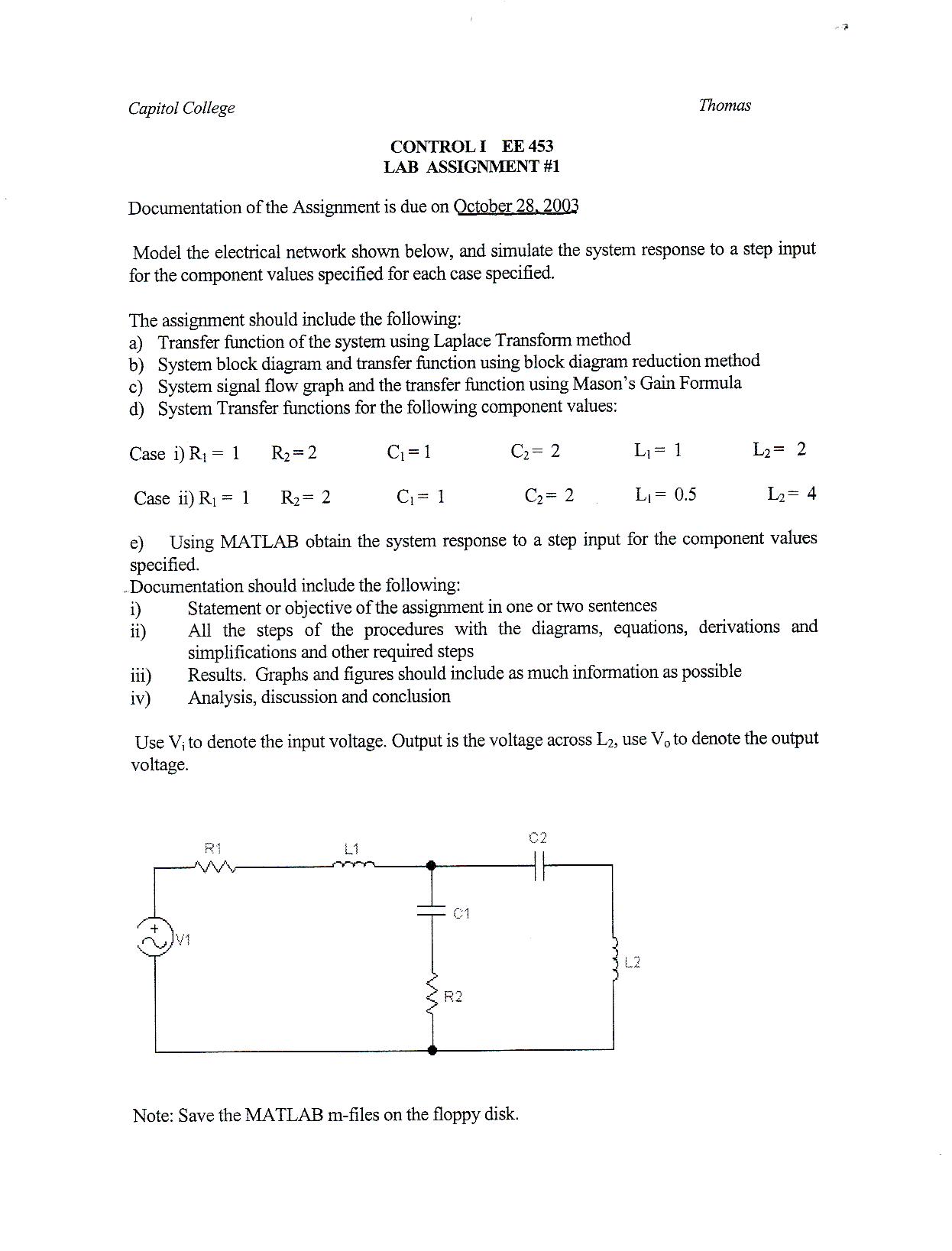 This lab will demonstrate the ability to model a system using MATLAB®. A simple RLC filter will be used and the Laplace transform will be found. Using the Laplace transform, a unit step input will be applied. The result between analytically solving the output and the resulting output from MATLAB® will be compared.