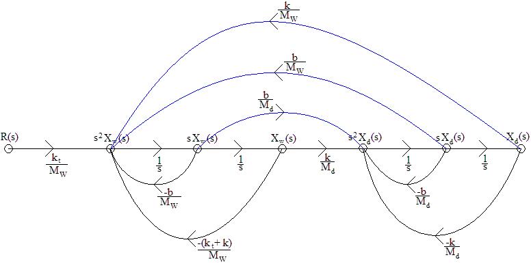 kt*(k + b*s)/((Mw*s2 + b*s + kt + k)*(Md*s2 + b*s + k) – (b*s + k)2 |