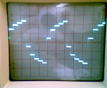 19) Simulate a semi square sawtooth waveform with amplitude 1024 and a frequency of 1KHz.