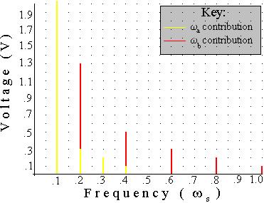 1) Q: Describe the spectrum for the following conditions: A signal described by x(t) = 2*cos(wa*t) + cos(wb*t) is sampled at frequency ws. Give the spectrum for the following combinations of wa and wb: