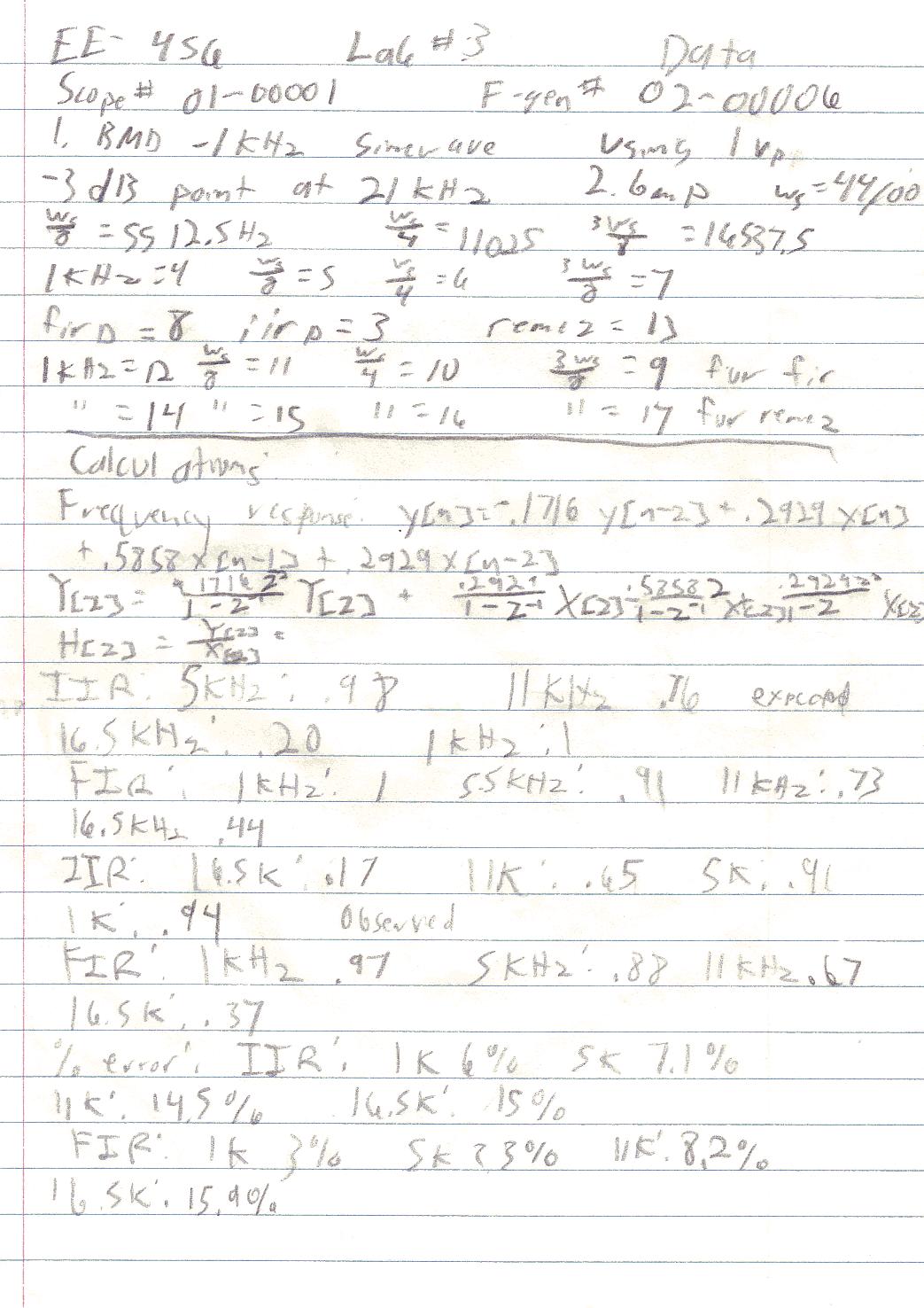 8) Table 1: Expected vs. observed frequency response for IIR filter: