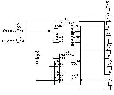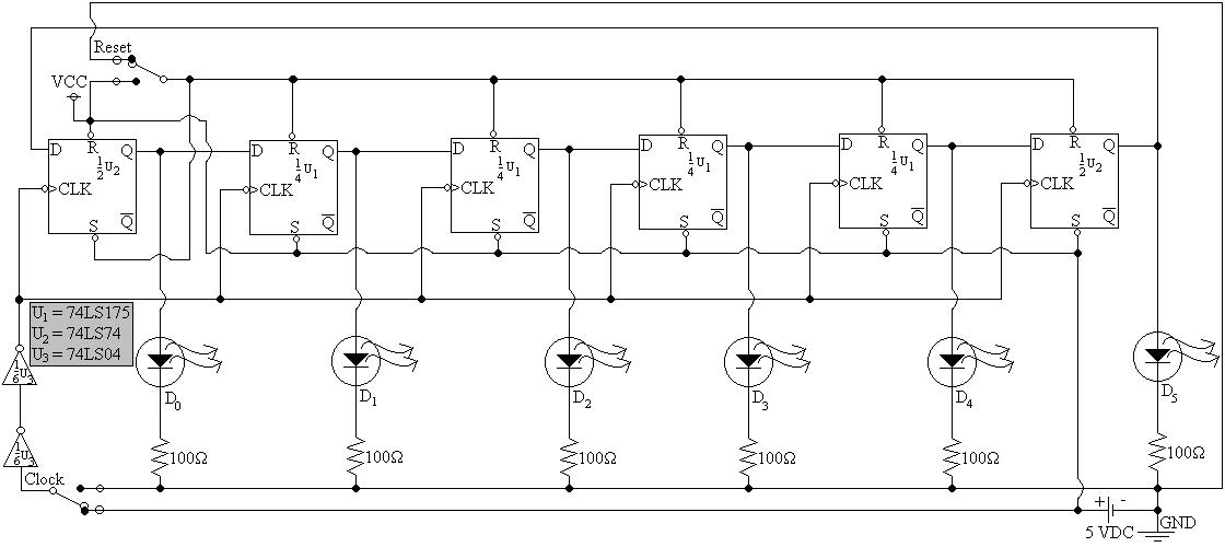 5) Physically construct and test the operation of a D Flip-Flop ring counter, and test operation.