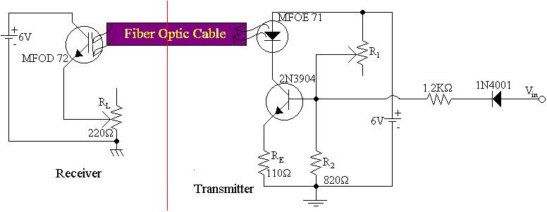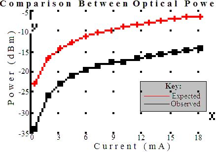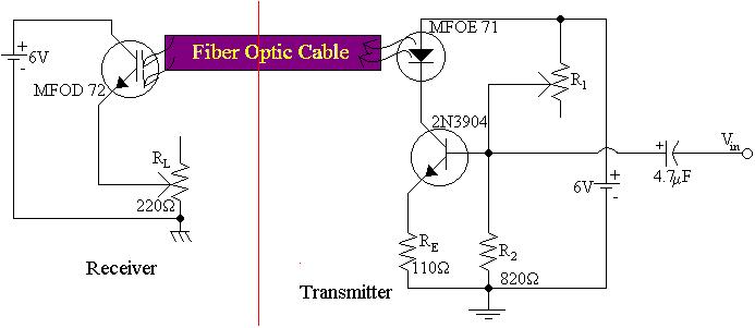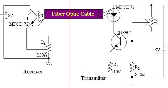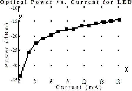 The objective of this lab is to assemble a simple communications link to measure the various parameters involved in that communications link. Using the link, measurements of the volt-ampere relationship of the transmitter LED, the optical efficiency of the source, the quantum efficiency of the receiver, the responsivity of the detector, and the coupling loss of the link will be made. Then, an analog signal will be applied to the circuit and the resulting -3dB bandwidth of the signal will be measured, and calculated to form an r-c network associated with the receiving circuit. Also, the tradeoff between signal gain and bandwidth will be observed. The dark current for the photodetector, the transfer function for the overall system, the electrical bandwidth, and the photodetector rise time will also be calculated here. Lastly, the system will be reconfigured to handle a digital signal. The system's performance will be measured through rise times: The rise time will be defined as the time to transition form 10% power to 90% power. The calculated rise and fall times will be then compared against observed ones, using a square wave function generator.