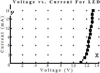 13) Repeat steps 11 and 12 for emitter voltages of 3.7V, 3.4V, 3.1V, 2.8V, 2.5V, 2.2V, 1.9V, 1.6V, 1.3V, 1.0V, .7V, .4V, and .1V.