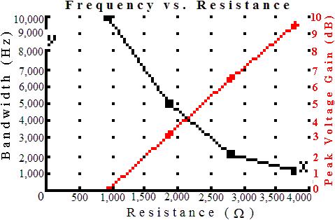 17) Q: What would be the expected output voltage , relative to input voltage, and bandwidth for the resistance selected in Q16?