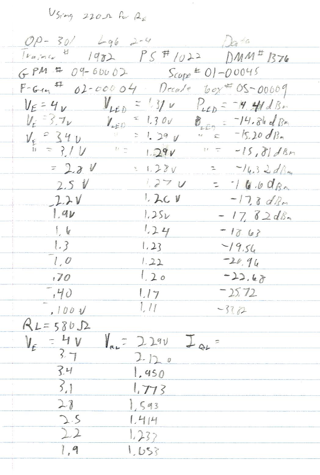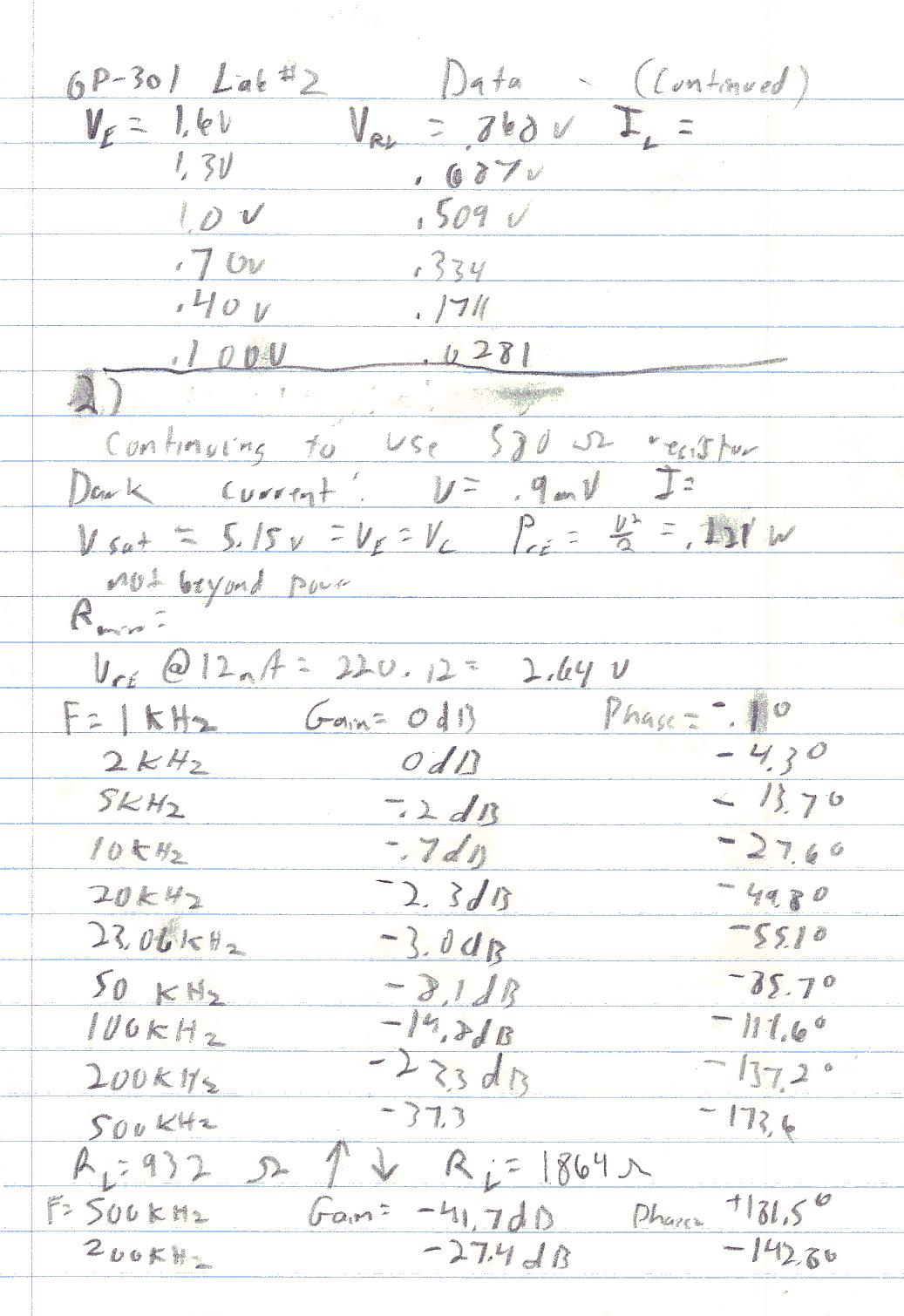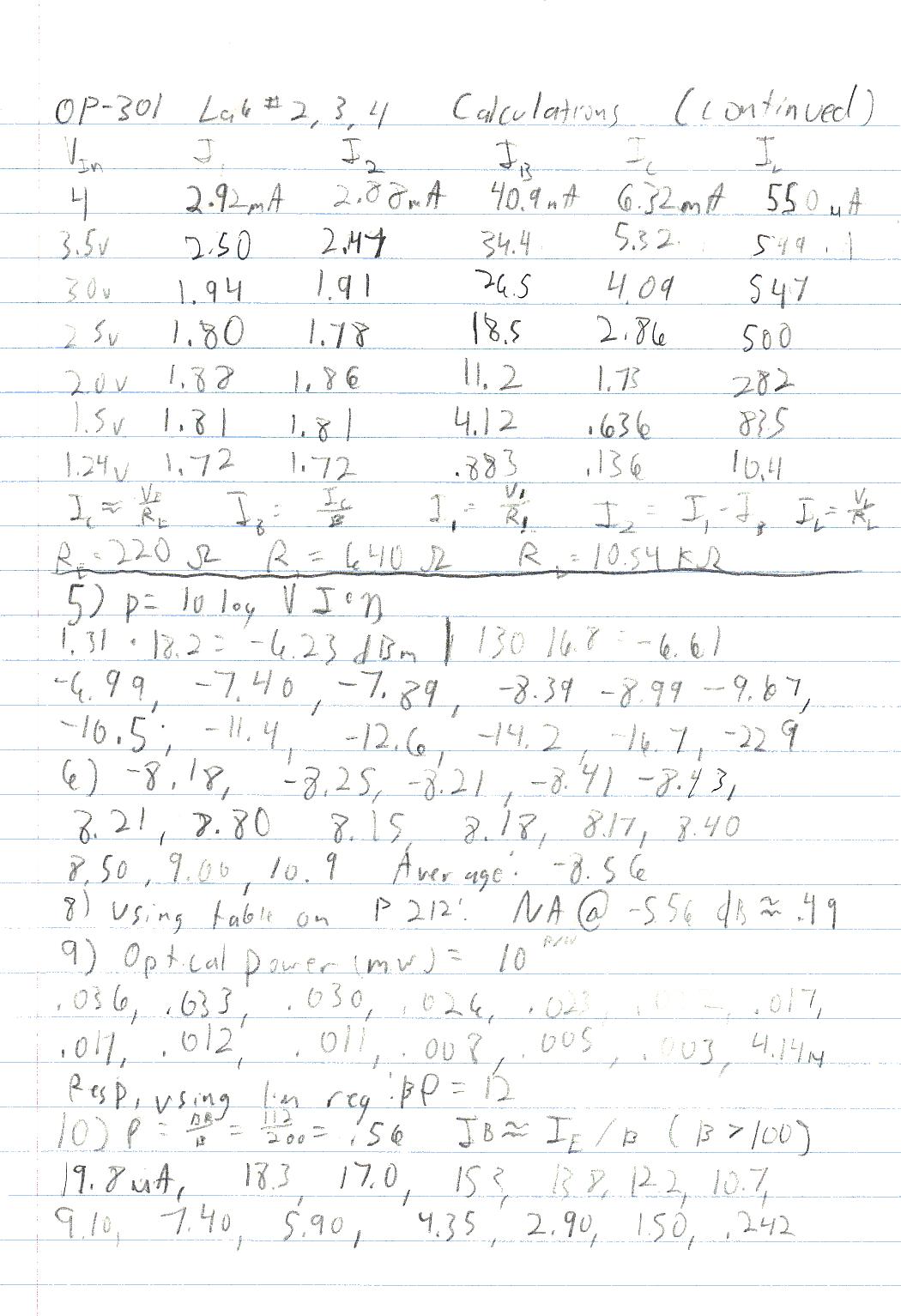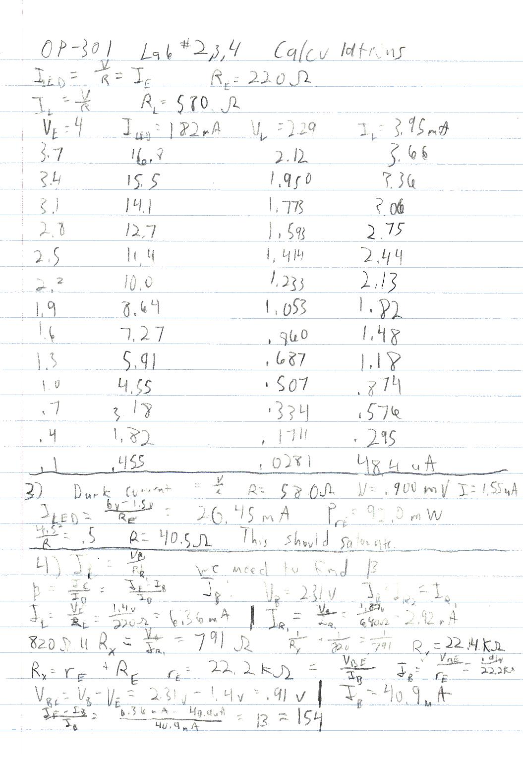 10) Q: Assuming the phototransistor has a b of 200, calculate r for the base of the transistor, and show the base current for Table 2.
