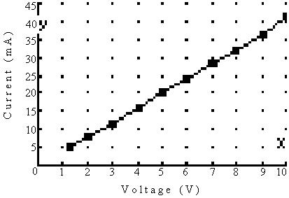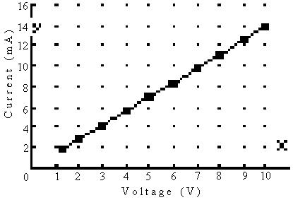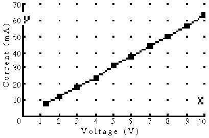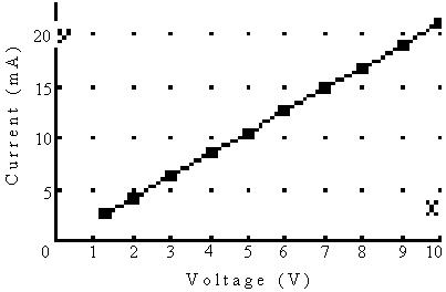 2) Using V=1v - V=10v in 1v increments measure the current through the resistor.